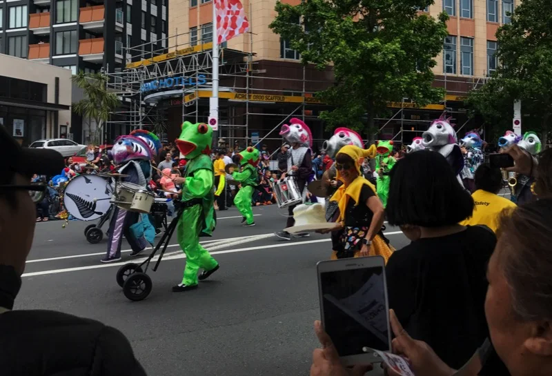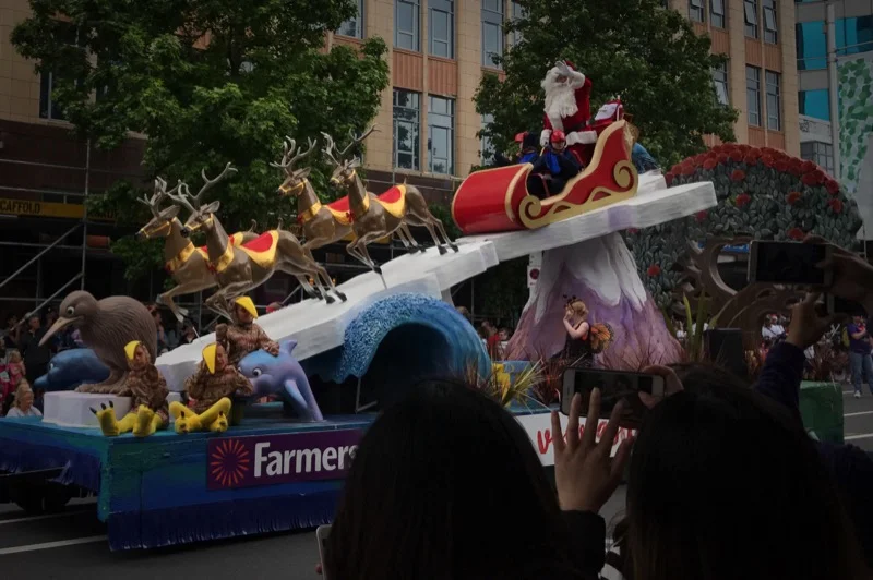 This morning I arrived in Auckland, New Zealand. Only half my luggage arrived with me, but once I began to run errands I stumbled onto the Santa Parade on Queen Street.