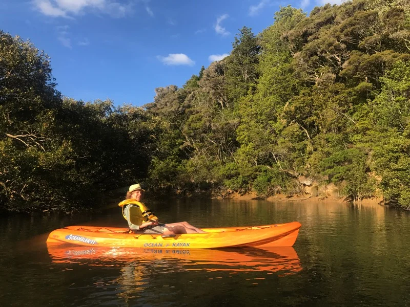 We set up our tents, cleaned up and James let us use two of his kayaks. We ended up paddling through mangrove trees! When we got back, two other TA trampers were at the camp. Magnus from Sweden and Robert from the US.