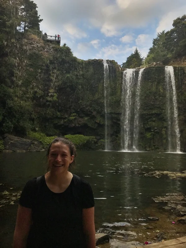 Then I walked back to the hostel and campground via Whangarei Falls. The falls were beautiful! There was a couple there and I asked the lady if she would take my picture and then I could take theirs. They were both so nice and we started talking for a bit.