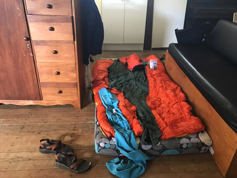 My bed at Stillwater. It's so nice to sleep under a roof with a mattress!