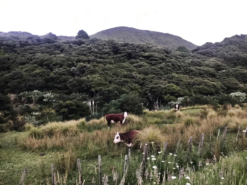 I left Ahipara around 4 am. I wanted an early start to try to make up for yesterday's 0 day. A little after sunrise I got done with the road walking and got ready to start the Herekino Forest. It was pretty muddy looking but I was able to strategically make my way around all the mud pits and keep my feet dry and un-muddy. New Zealand is pretty crazy. The forest is so green and looks like a mix between a rainforest and a tropical jungle in Jurassic Park. Then you wander out of the woods onto green rolling farmland that reminds me of Scotland.