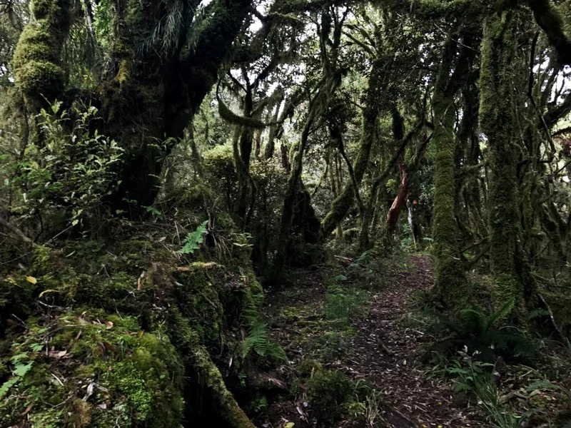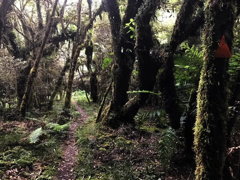 All morning the forest trail was perfect. There were a few slightly muddy spots, but compared to what is normal for the TA it wasn't muddy at all. Around 10:30 or a little after I caught up to Julia, Puff Puff and Kristen taking a break at Weraroa Summit. There wasn't a view because it was surrounded in brush, but it made it a nice place to stop for a break (if there's no brush it probably would have been very windy).