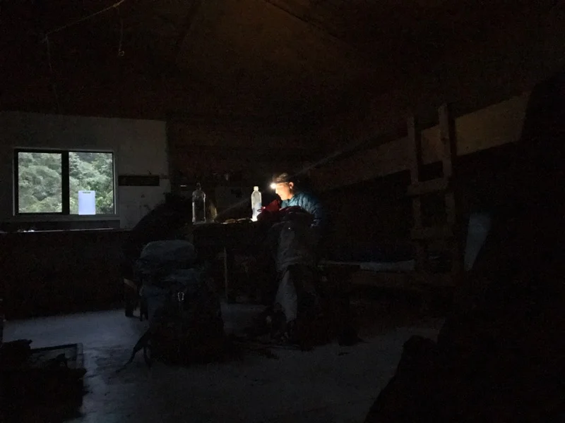 When we went to bed last night, we could hear little critters scurrying around the hut. But they stopped after less than an hour and came back for less than an hour in the morning around sunrise. They didn't bother us or any of our belonging so that was a plus.
