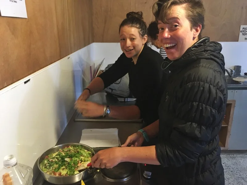 Julia and I making breakfast. Julia was doing most of the work. I was just adding herbs that were free and growing at the holiday park.