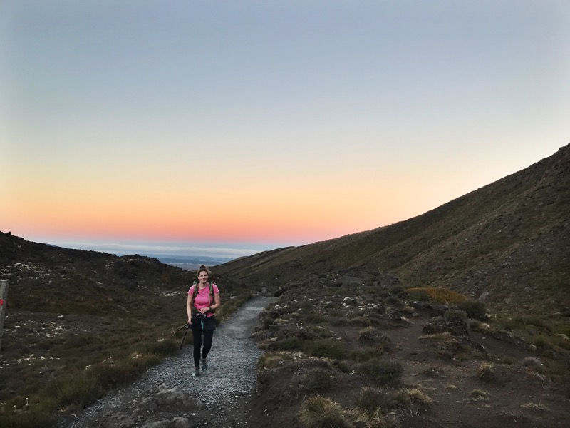 When we arrived at the carpark we were so happy we camped at the campsite because it made us start our hike by 5:30 am. The sky was just starting to turn blue and as we arrived at Mangatepopo Hut, the sky was beginning to turn pink. As we started our climb up to Mangatepopo Saddle, the valley we had left began glowing golden. The sky we were walking towards became brighter and brighter and as we reached the base of Mount Doom (Mount Ngauruhoe) the sun was just beginning to glisten over the mountaintops to the east.