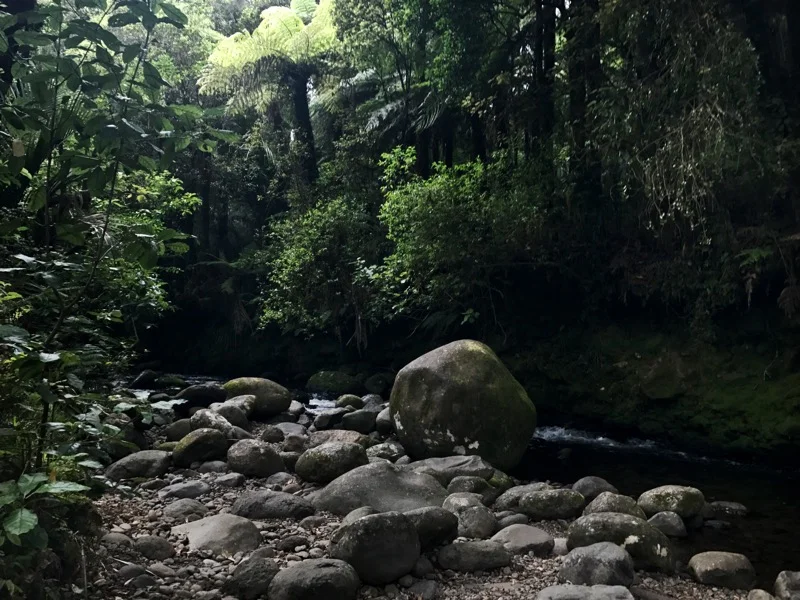 Soon that all began to change. The trail had incredibly steep sections where I had to pull myself up by roots, trees and rocks. The mud became unavoidable and I just accepted that I'd have mud up my calves. The forest was really reminding me of the Raetea Forest - but there was no way for me to duck out of this forest early if I wanted to get to the hut tonight (in the Raetea Forest, I cut about 6 kilometers off the trail by taking a different, shorter trail to the highway).