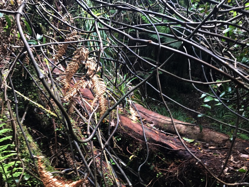 This was fun to get through with my pack. The vines like to grab it and try to pull it off my back, but I'm getting better at maneuvering over and under trees and through these vines. There's usually a spot or two like this in most of the forests.