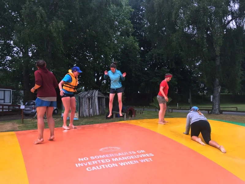 The holiday park had a movie room, a heated pool with a little water slide, a huge balloon thing you jump on like a trampoline, a big bird house and more. Customers also got a free shuttle ride to town and back during work hours because they're about 6 kilometers out of town. A bunch of us quickly hopped (and water slide-ed) into the pool before we left 15 minutes later to go to dinner in town.