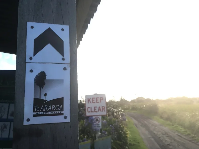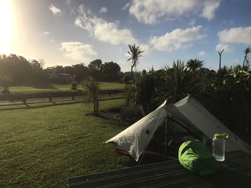 In the early evening I made it off the highway and was on the home stretch to the campsite I planned to stay at. There were finally some houses too! The first few I passed were farms with long driveways or looked like nobody was home, but I finally got to a house that was close to the road, had a car in the driveway and had a few windows cracked. Someone had to be home. As I walked up a really nice lady said hello and I explained I'd been walking all day and would really appreciate it if I could quickly use her bathroom. She showed me the way and after thanking her again I hit the road to the campsite. I made it to the Koitiata beach town and campsite around 6:30. They let TA hikers stay there for free and just ask that they sign a guest book. After setting up my tent and making dinner I found the book. Erinn, Trevor, Marjolein and Creya had been there the night before like they planned.