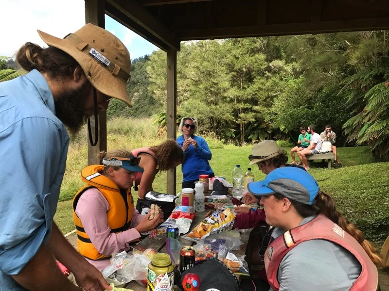 After a few hours of paddling we made it to Maharanui Campsite for a lunch and snack break. It's nice to stop at the campgrounds for lunch because they have toilets. Once we all had our fill of food, we hit the river again.