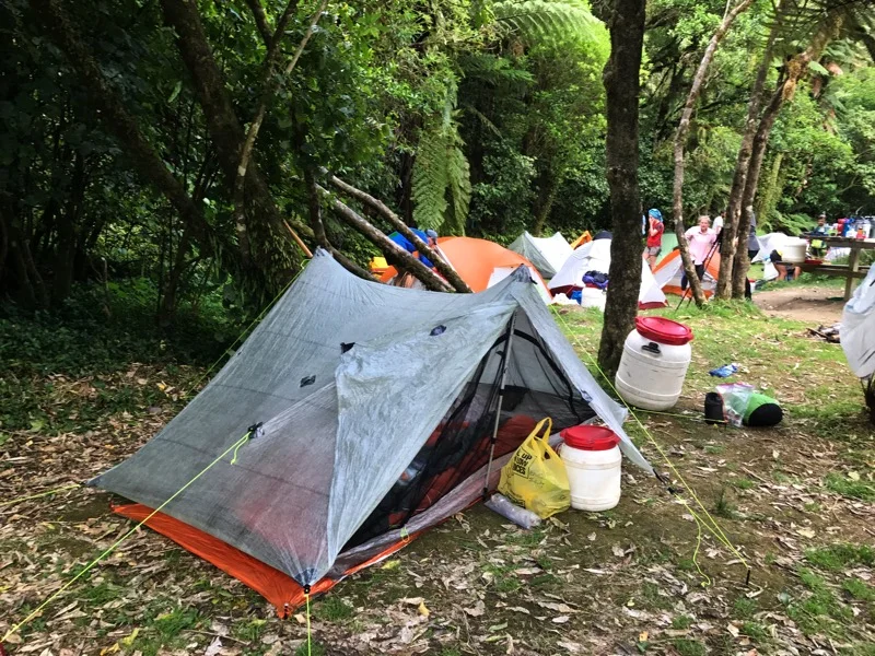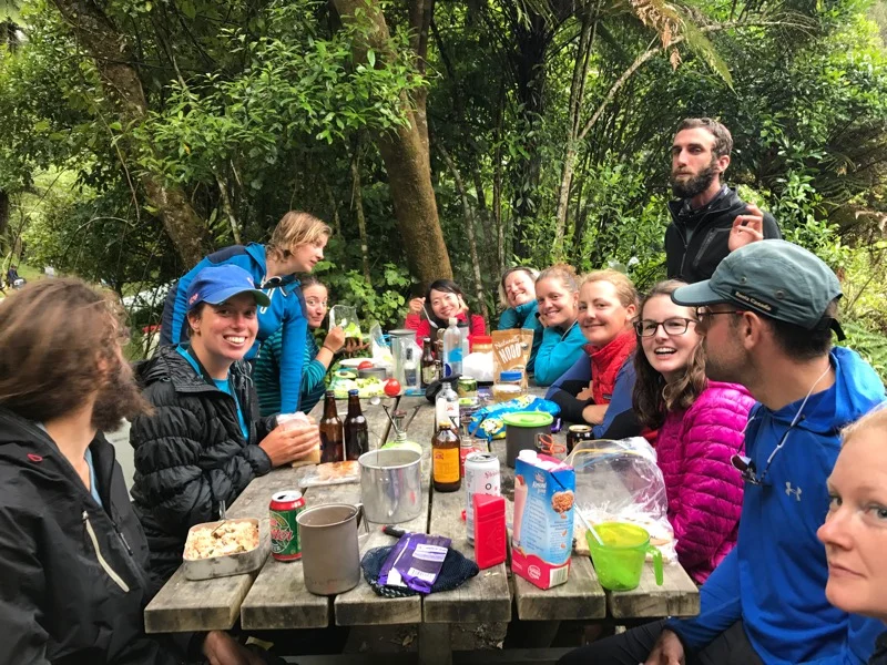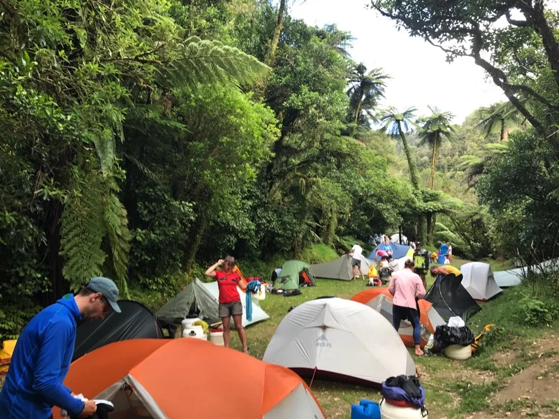 Someone saw a rat around the campground, so we all put our food in our tubs for the canoes instead of our tents. Possums are the biggest animals you need to worry about in New Zealand when you're camping so you don't need to bear can or bear bag your food. We didn't want to end up with hole-y tents like Dave. I put on a news podcast and went to sleep.