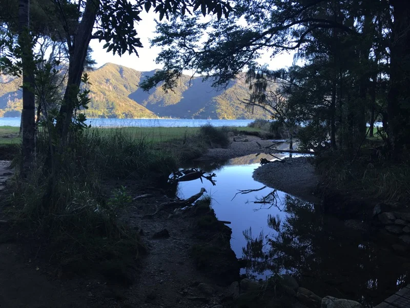 We passed a beautiful lookout and made it to Black Rock Campsite for a snack break. They ended up having water in the tank there. We hiked in the hot sun and made it to a World War Memorial and walked past the turnoff for Cowshed Bay Campsite.