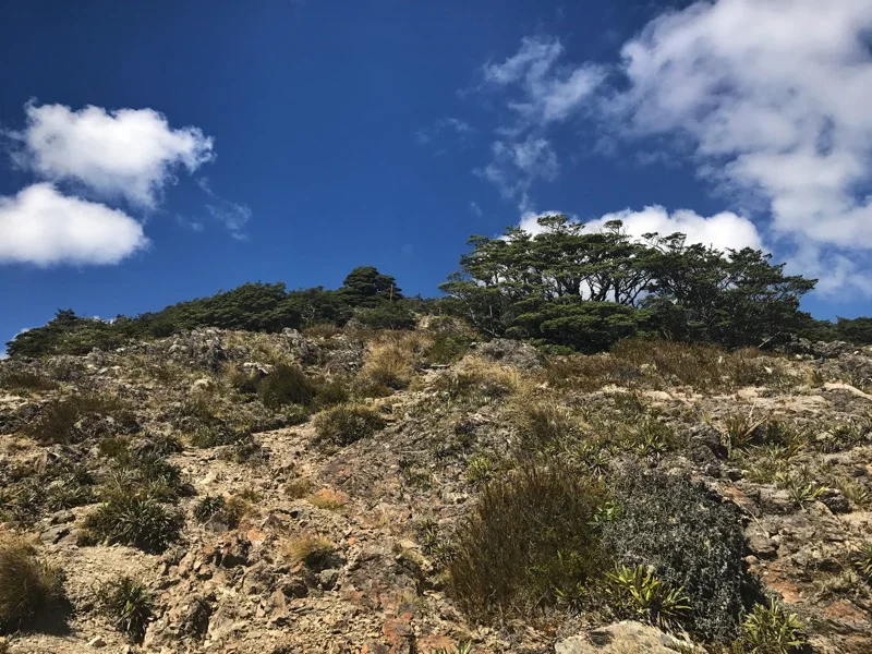 After Hacket Hut, the trail went into the river for a bit. At one point the trail markers made it look like we were supposed to get out of the river, but after bush whacking for a few minutes we realized they wanted us in the river a bit longer. Once the river bit was over, the trail was pretty much uphill to Starveall Hut. I caught up to the four Kiwi ladies we had been following and got to Starveall Hut around 12:15. There was a retired Kiwi from Hamilton that was drying out his tent. We talked for awhile and he packed his tent back up and headed for Slaty Hut.