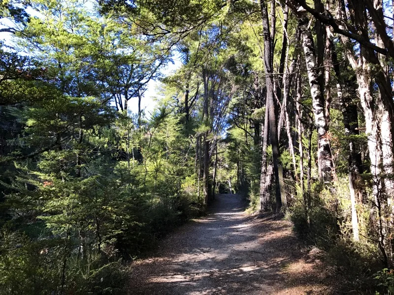 Margaret and I left around 8 and talked while the trail was a wide four wheel drive track. She was a retired teacher. When we got to the car park we hopped in her station wagon. We got to St Arnaud before 10 am and I dropped my backpack off at Travers Sabine Lodge until I could check in at 1.