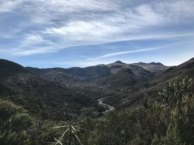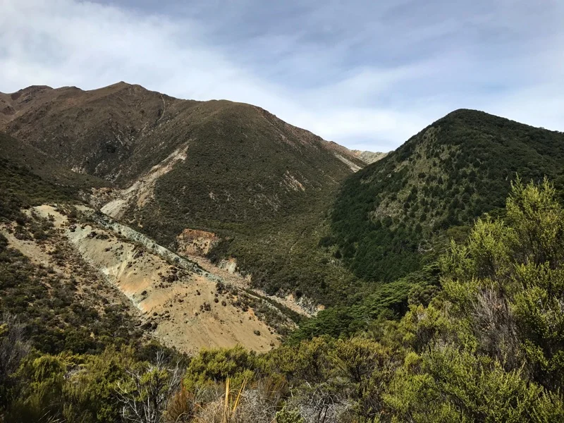 The walk to Red Hills Hut was much trickier than I had hoped. The most difficult aspect came before and after the river crossings. The trail would go very steeply down to the river and sometimes it was hard not to slip because the scree wasn't solidly in place. After crossing the river, there were a few steep rock climbs up to the trail, but it was all doable. I also thought the trail would be more sheltered because it was below the tree line. But the scenery and shubbery has completely changed from the Richmond Range. The trees are small, bushes are more common, and the soil is more red, dry and rocky.