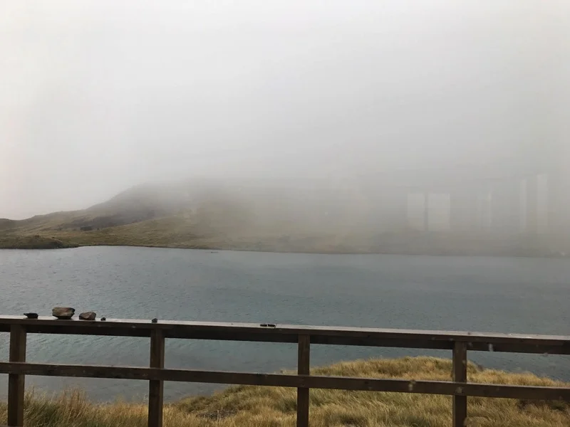 I woke up at 6 am and got everything ready to go in the dark. Even though I was ready to go at 7 I could see the rain and wind on the lake and didn't feel like hiking in it. With my schedule I could afford to take a whole or half day off somewhere and today had the worst weather forecast by far. It seemed like the best day to stay put. There was a group of 7 people from Perth, Australia that had arrived yesterday and was taking a zero day at the hut. We talked a bit, I wrote some blogs I was behind on and sat in my sleeping bag watching the weather hoping it would get better. It was chilly. Sometimes I could see my breath.
