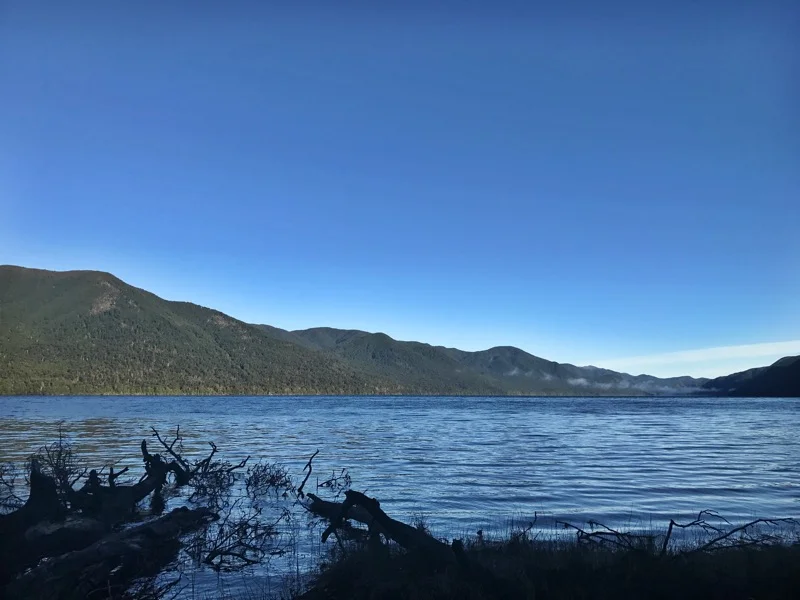 The weather one was so much better this morning. Here's a view of the lake by the hut.
