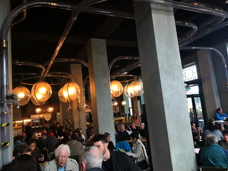 C-1 Espresso was packed but I spotted an open table. The restarting was so neat, I decided to stay. Maybe it was an old bank because tubes that reminded me of the ones you place bank items in ran all around the place. There were huge globe lights and a moving door that looked like a bookshelf that opened to the bathroom.