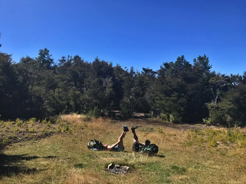 Sam and Lauren rest their feet outside Castle Rock Shelter.