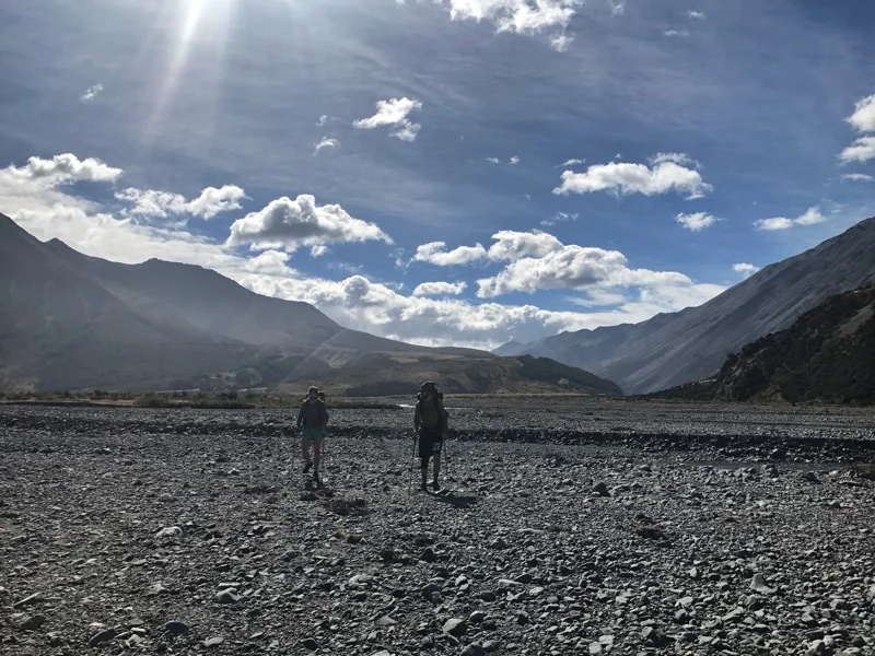 We wanted to start early today because we could potentially hitch to Methven. If we couldn't get a ride, we'd have to camp at the Power Trust Campsite and road walk to Rakaia Gorge Campground all day tomorrow.