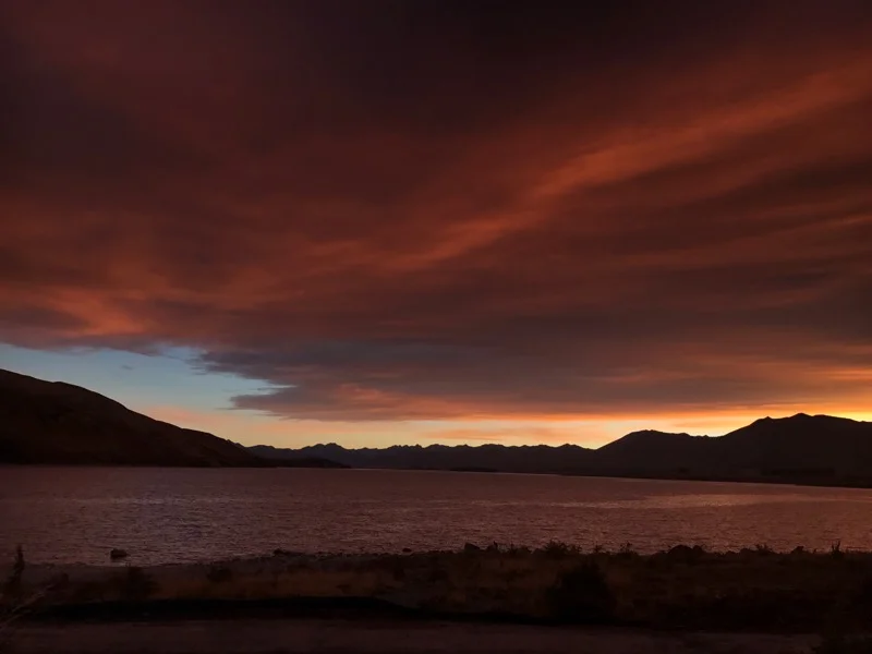 They pulled into the parking lot just as I arrived. There was another couple biking to Ohau. The nice guy delivering the bike showed me how to work the saddle bag (using one was new to me). Once everything was good to go, I went back to the YHA to watch the sunrise. I didn't want to bike in the dark.
