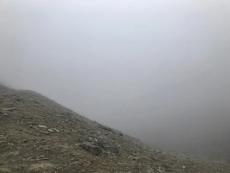 When I made it to the saddle, it was veiled in clouds, but I was just glad the snow and rain had stopped. The snow had melted since the NOBOer was up there.