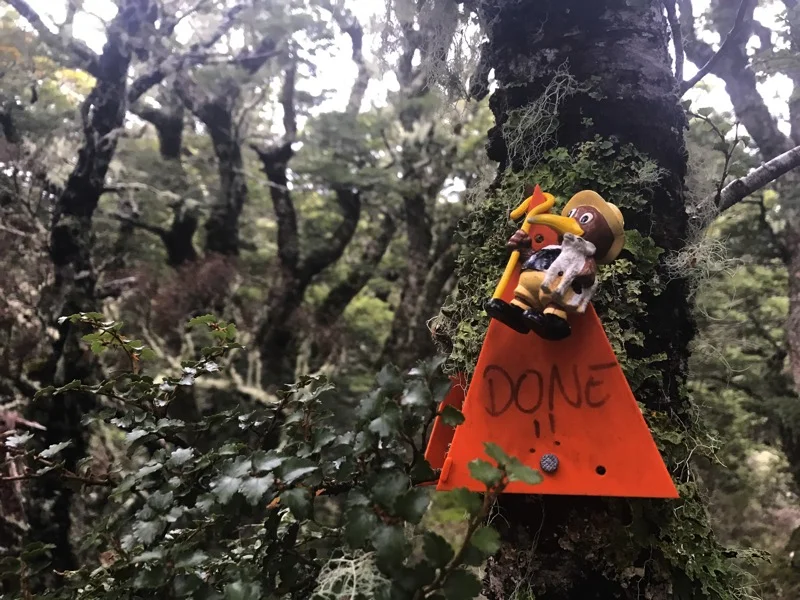 This was at the top of the long hill after the hut. Kiwi was excited to take a picture with it.