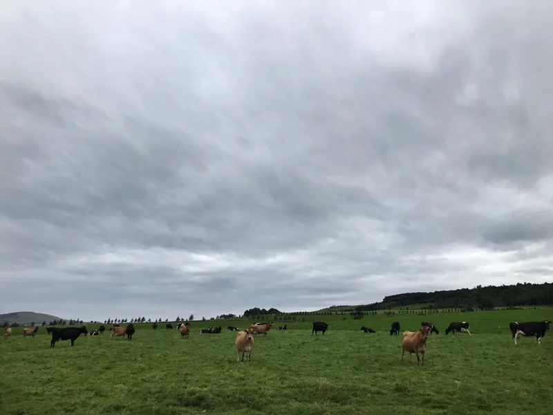 I came to a bit of farm road where I saw some cows. They were walking back to their field after being milked, so I wasn't sure where to walk. I needed to walk in the opposite direction as the cows, but if I walked toward them they turned around. After waiting for most of them to pass, the slow ones made it to me. They just stopped and stared at me and wouldn't move, so I decided to go. They were a bit confused, but I got to where I needed to without many turning around and went over an electric fence to get out of their way.