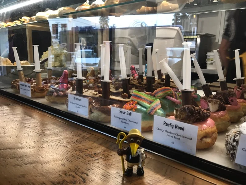 Before it got too late I went to Balls and Bangels to get a Freak Shake and one of their crazy extravagant donuts. Puff Puff had told me about the place. Some of the donuts came with syringes of filling! The milkshake was crazy. It was topped with a brownie, sugar cone, marshmallows and whipped cream. It was hard to finish. A lady walking by saw me through the window and gave me a thumbs up.